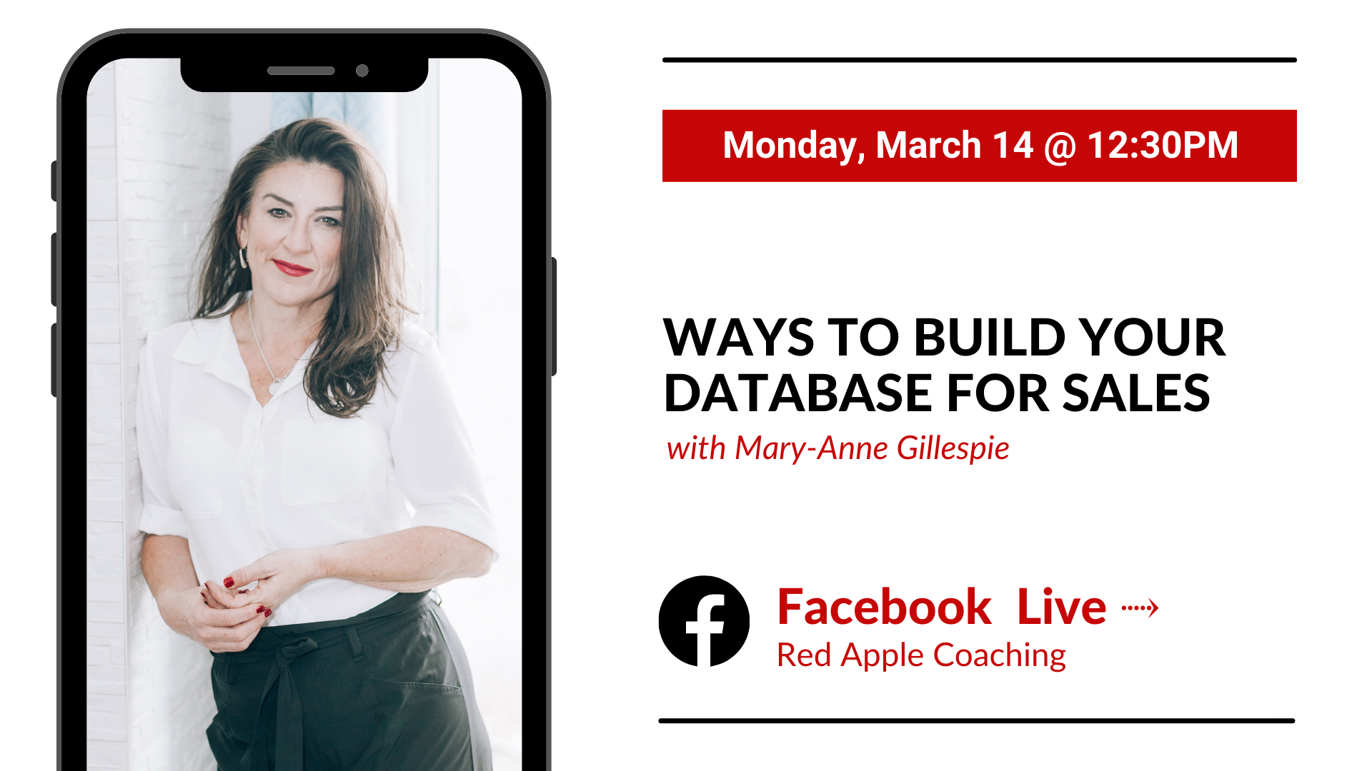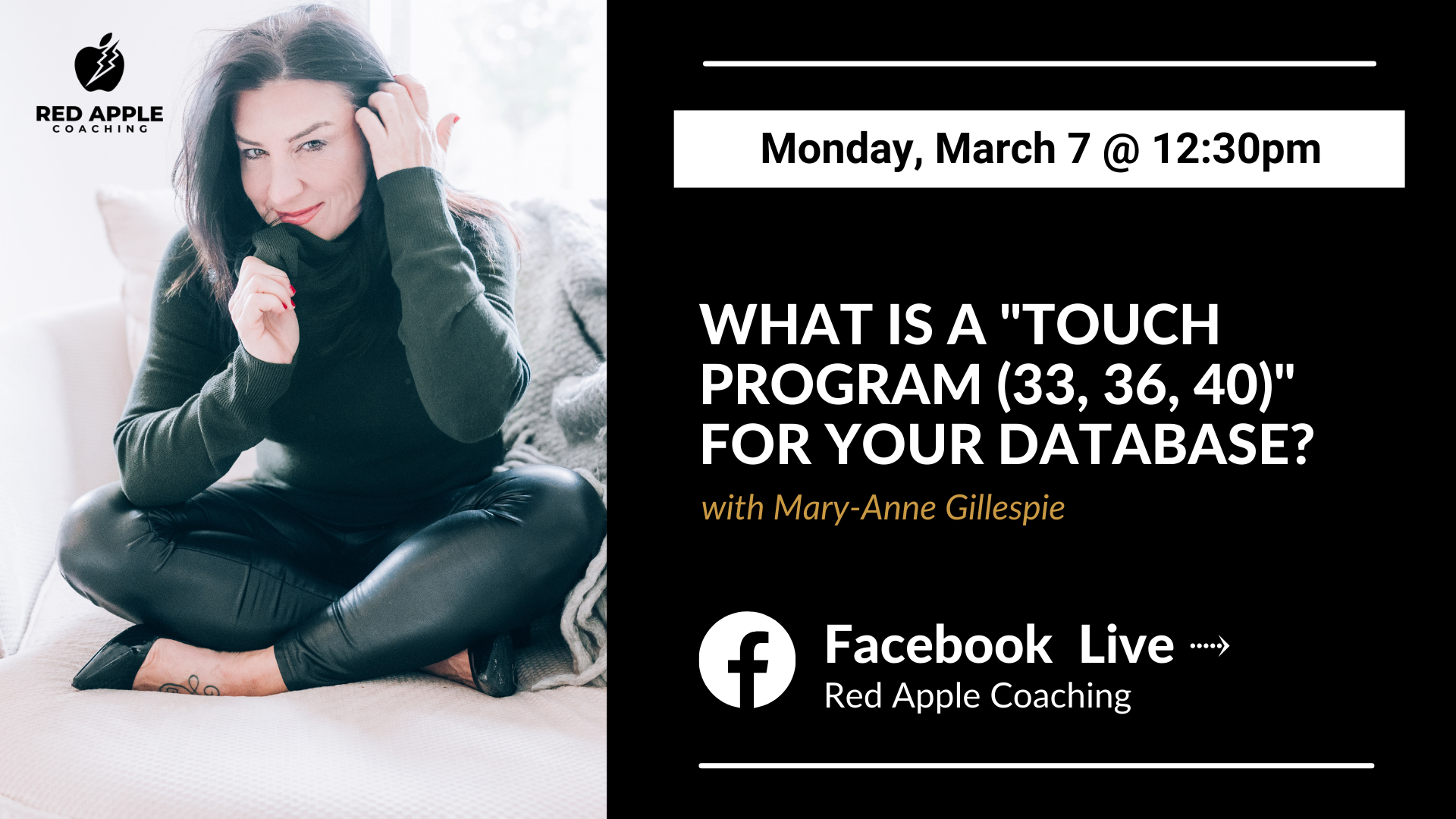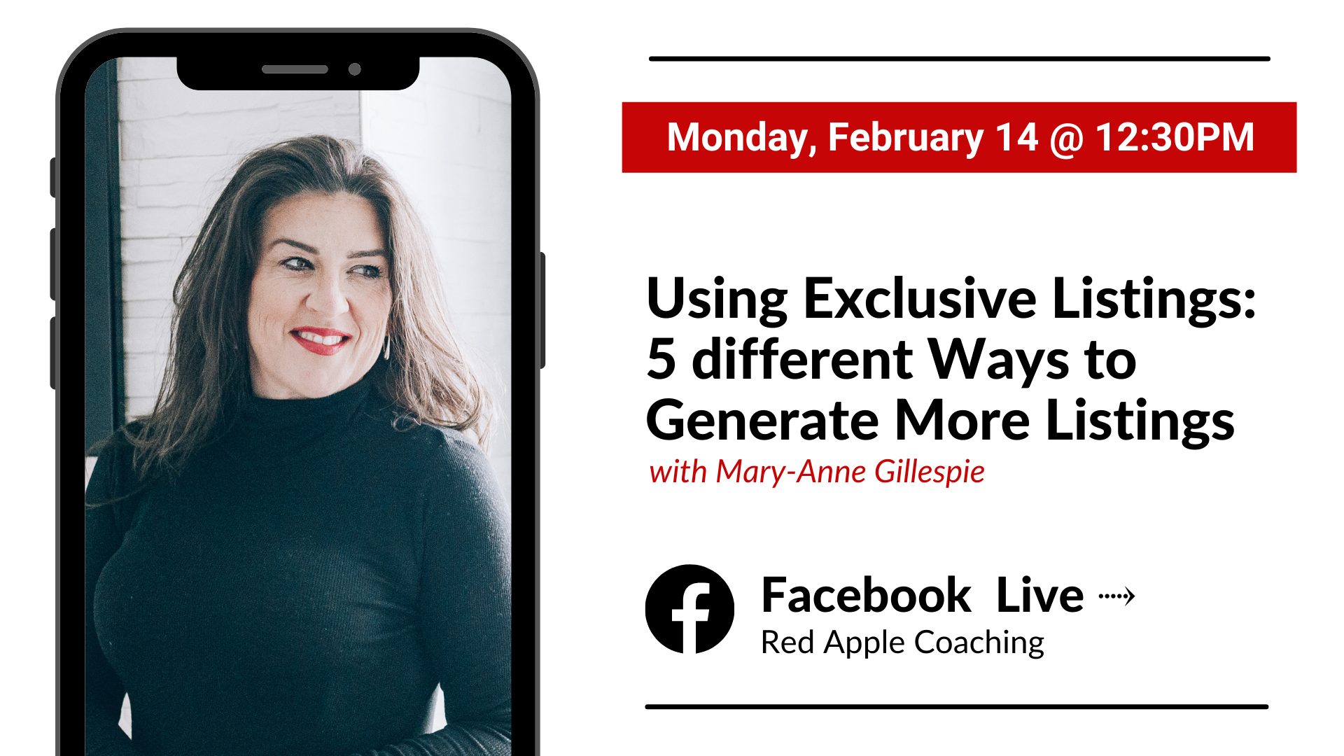 Red Apple Coaching Facebook Page Red Apple Coaching Ltd., Ottawa, Ontario, CanadaJoin Mary-Anne Gillespie, #1 Real Estate Business Coach, for a FREE Live Coaching every Monday on the Red Apple Coaching Facebook page! In this session learn all about: Creating an Abundance Mindset This 30 minute training session, with new topics weekly, will provide you with the best lessons, insights, and tips to: GROW your business BUILD […]